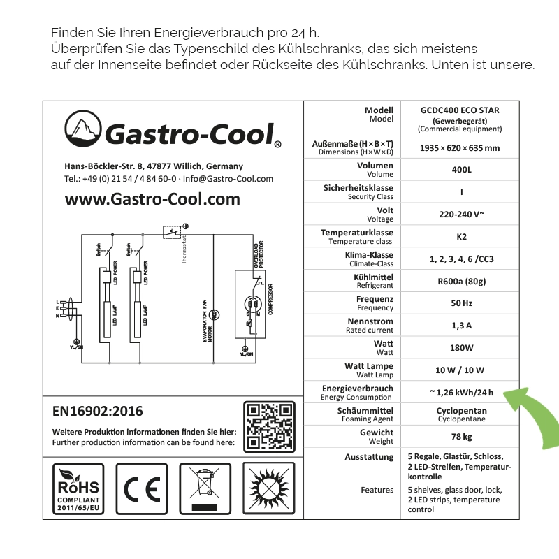 Gastro-Cool verwendet seit Jahren R600a als Kältemittel in den meisten ihrer Produkte. R600a ist umweltfreundlich, es verursacht keinen Treibhauseffekt, es hat einen niedrigen Stromverbrauch, das Kältemittel ist mit verschiedenen Schmiermitteln kompatibel, die Lasttemperaturgeschwindigkeit ist niedrig, die Kühlleistung ist äußerst effizient.